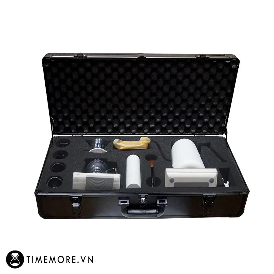 الحقيبة نفسها مصنوعة من مواد متينة تضمن حماية معدات قهوتك. مظهرها الأنيق والراقي يجعلها هدية مثالية لعشاق القهوة، إذ تجمع بين العملية والجمال.