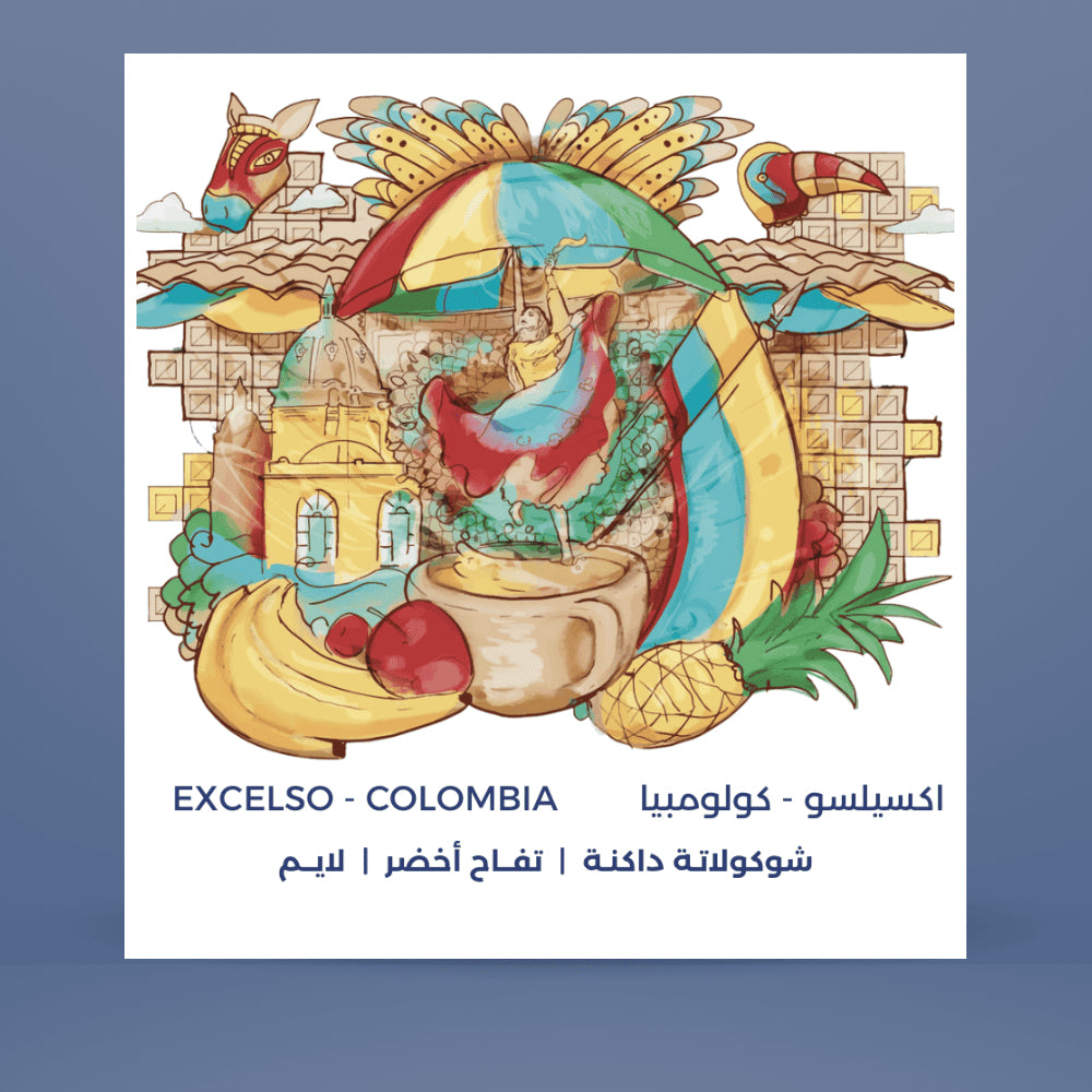 محصول اكسيلسو والقادم من جنوب القارة الامريكية، من غرب كولومبيا على ارتفاع 1900 م، تمثل هذه القهوة التوازن المثالي بفضل حموضتها الزاهية وحلاوة القهوة المغسولة.